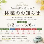 2026/4/27 ゴールデンウィーク期間中の営業について 平素よりご愛顧いただき、誠にありがとうございます。 誠に勝手ながら、下記の期間をゴールデンウィーク休業とさせていただきます。 【休業期間】 5月2日(土)~5月6日(水) 期間中にいただきましたお問い合わせにつきましては…