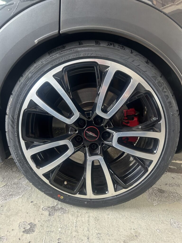 今回の車両は、摩耗によって溝が浅くなり、雨の日のグリップ力低下が気になる状態でした。特にJCWはトルクも大きいため、早めの交換をおすすめさせていただきました。