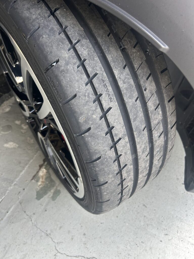 純正サイズに適合するスポーツ性能重視のタイヤを選択し、組み替え・バランス調整を実施。走行中の振動を防ぎ、ハンドリング性能をしっかり引き出せるように丁寧に作業を進めました。